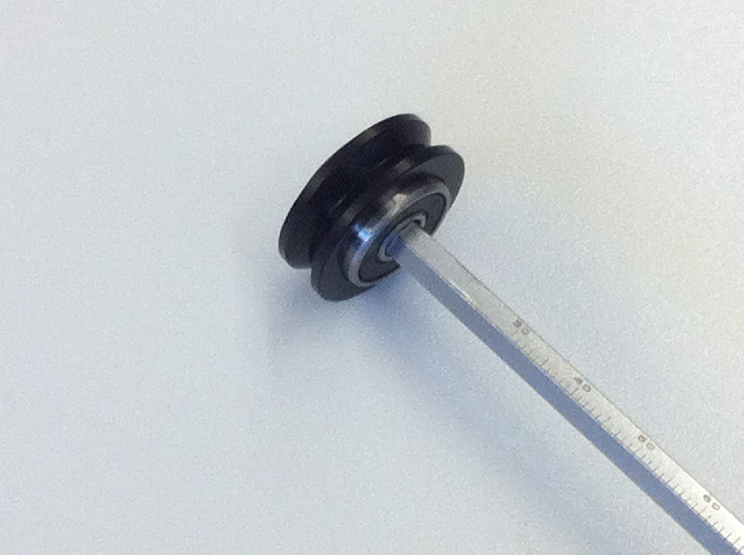 Bei den Umlenkrollen gibt es tatsächlich alte und neue. Bei den alten wurden beide Kugellager von einer Seite aus eingedrückt, was die Rolle nicht richtig fixiert hat. Bei den neueren Laufrollen werden die Kugellager, wie bei den V-Wheels, von beiden Seiten eingedrückt. In die Mitte kommt eine 3 mm Distanzrolle!